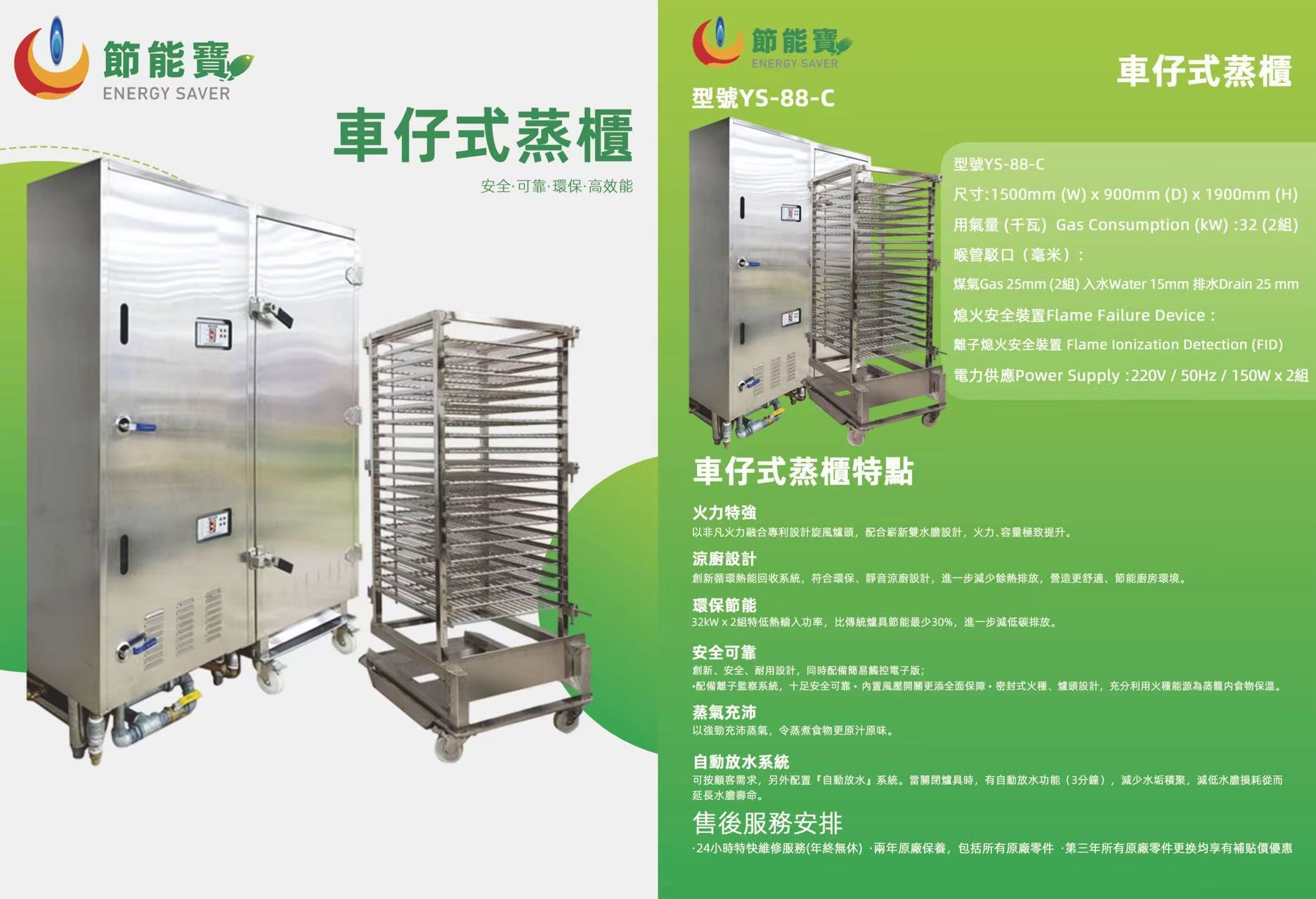 環保節能 : 32kW x 2組特低熱輸入功率,比傳統爐具節能最少30%,進一步減低碳排放。